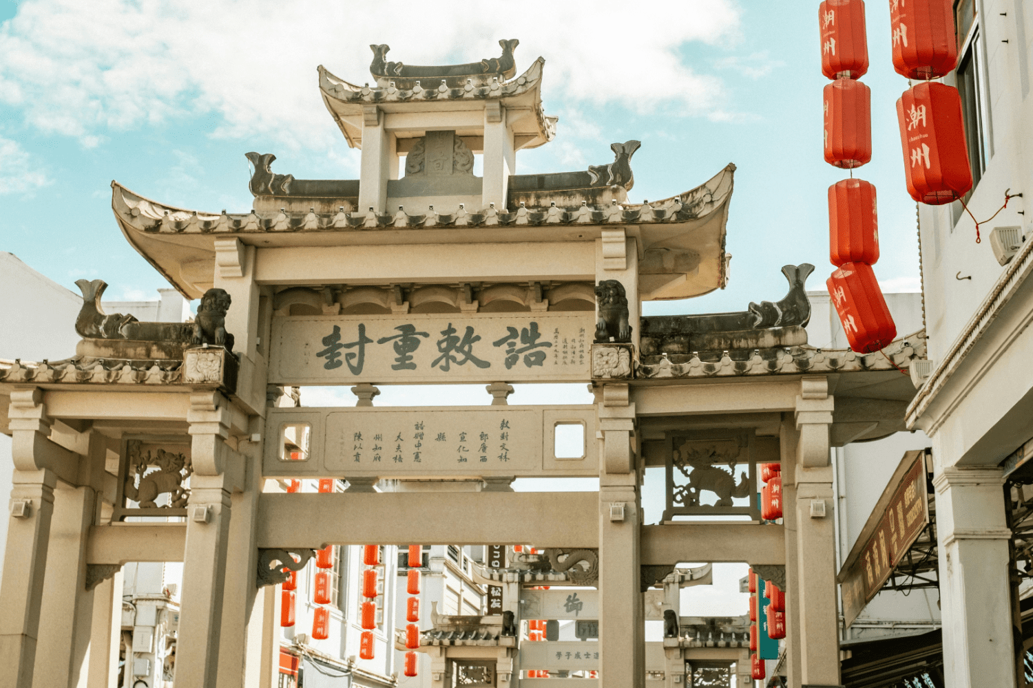 Chaozhou Ancient City Wall by eco car and visit the ancient building.