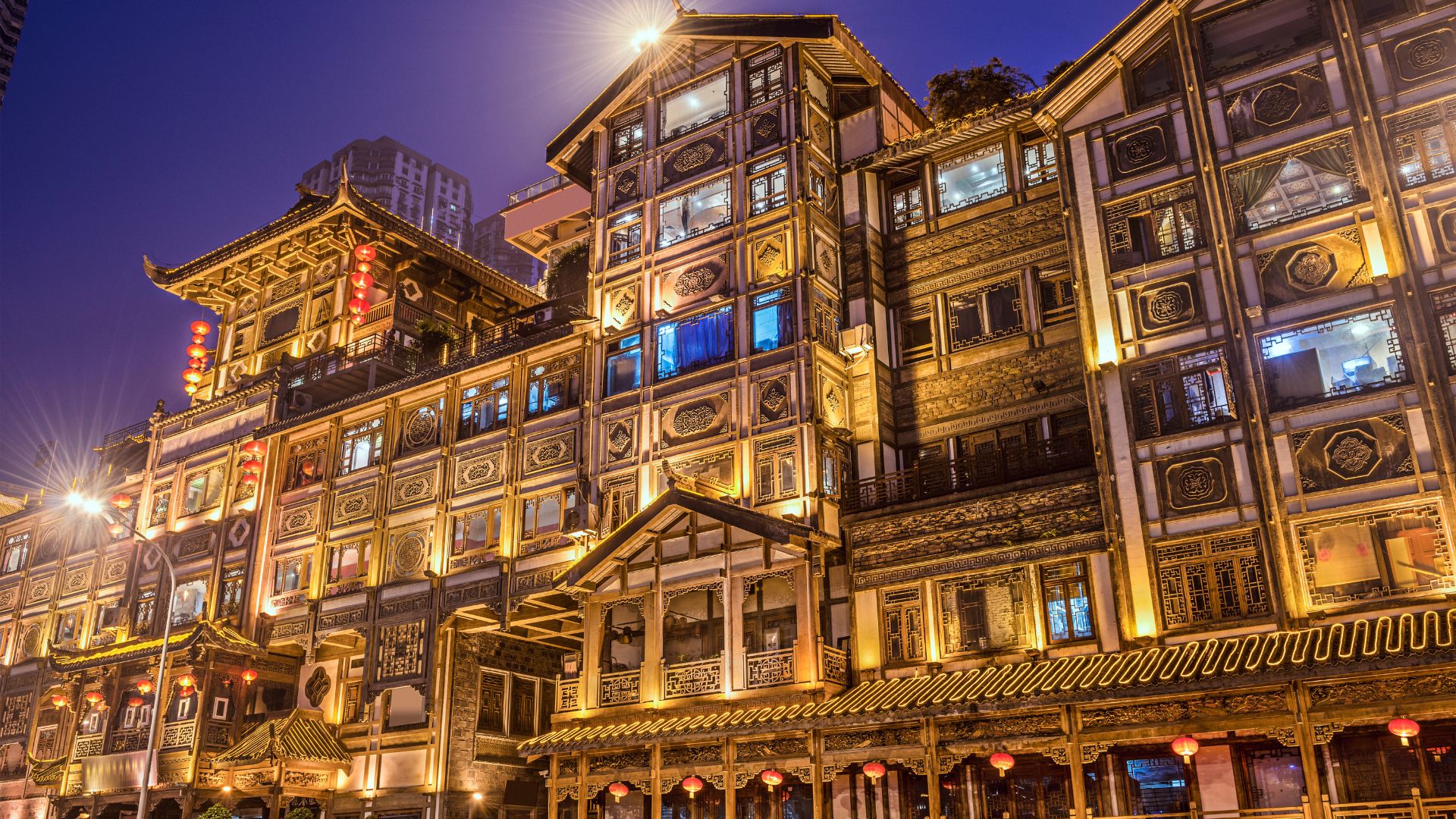 After breakfast, drive to Chongqing. Upon arrival in Chongqing, have lunch. After lunch, proceed to the popular tourist spot 【Hongya Cave】, where you can capture the iconic 【Liberation Monument】 stroll through the 【Pedestrian street】and experience Chongqing’s vibrant atmosphere.